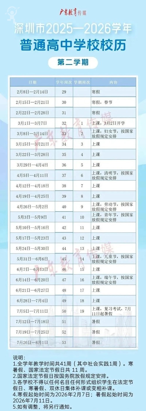 据多地教育部门发布的校历显示,由于2025年闰六月、2026年春节来得晚(2月17日),春季开学时间推迟至2月底3月初,暑假开始时间基本固定在7月上旬,两相挤压之下,新学期实际教学天数被压缩。